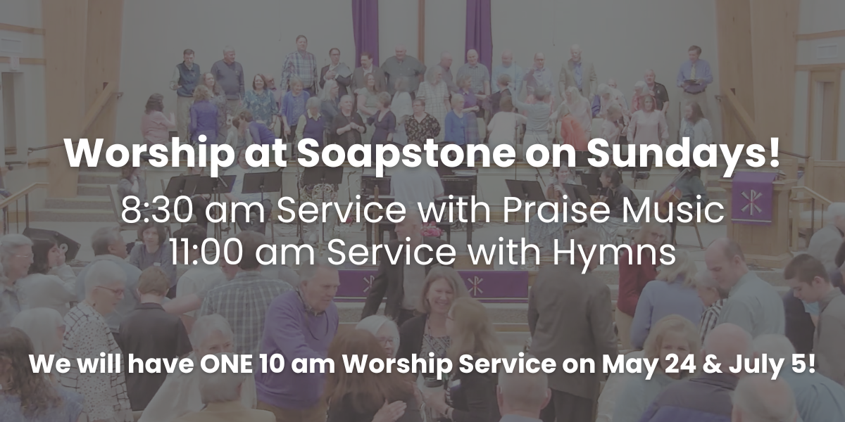 All are welcome! Come as you are-Jesus is already here! Experience worship anytime – Click here to visit the Soapstone UMC YouTube channel. Find Sunday’s bulletin here, uploaded on Fridays. Plan Your Visit What’s coming up this week? Click Here to Explore Future Events Click Here for Church Calendar Click Here for Sign-Ups/ Registrations Click Here for Member Resources