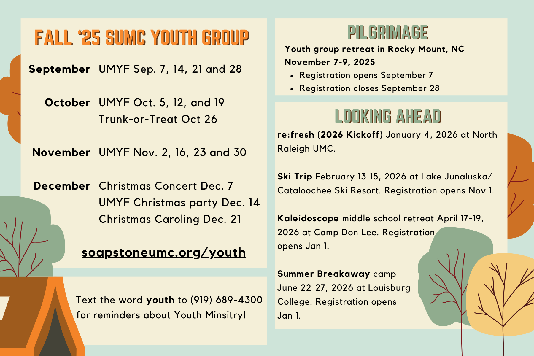 Our youth and adults travel to Lake Junaluska for a long weekend of fun. They will be skiing at Catoloochee Ski Area! Read more and register here.